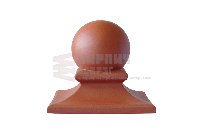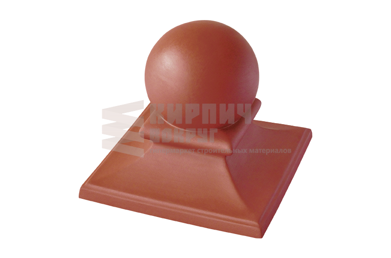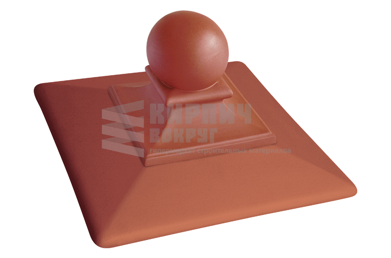 Клинкерный колпак (оголовок) для забора "Рубиновый красный" - ROYAL производства King Klinker, находящегося в Польше, имеет размер 445x445x250 мм с шаром. Применятся для ограждений, заборов, а также их столбов.