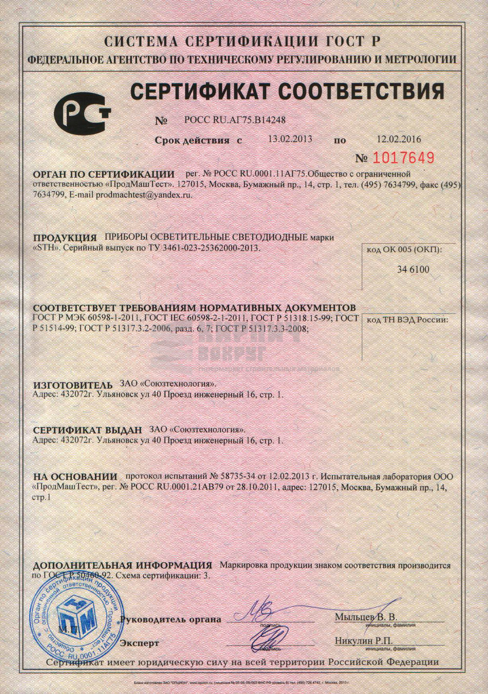 | Производитель | СОЮЗТЕХНОЛОГИЯ |